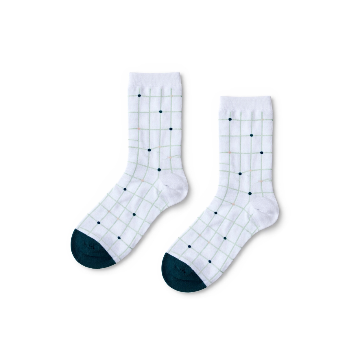 - עיצוב גיאומטרי עם גרביים מעוצבות משבצות צבעוניות